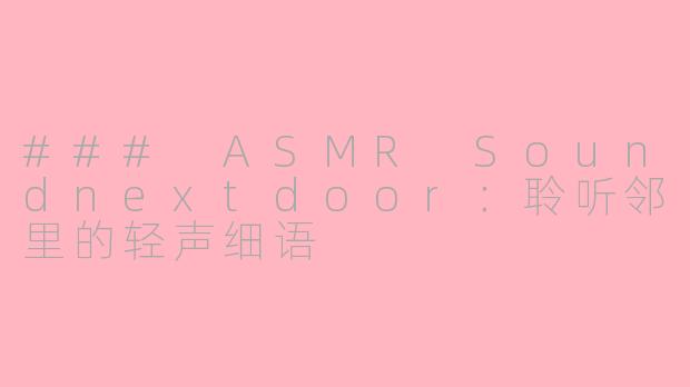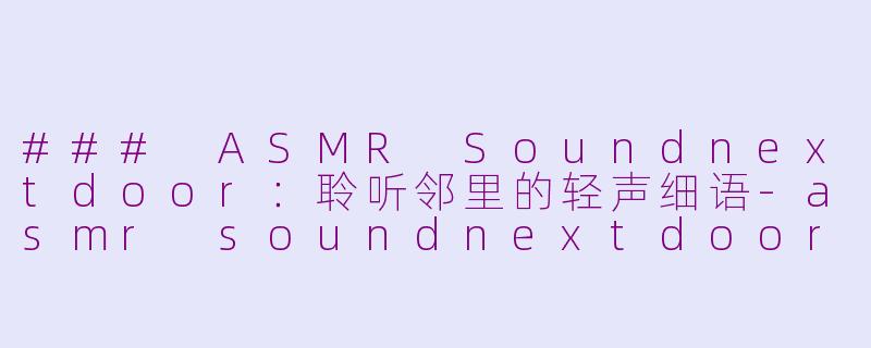 近年来,ASMR(自发性感知经络反应)现象逐渐走进大众视野,成为许多人放松身心的选择。而“ASMR Soundnextdoor”则是这个领域中的一颗新星,通过呈现邻里的细微声音,让观众在日常生活中找到宁静和安慰。