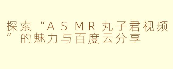 最近,关于“ASMR丸子君视频”的百度云分享也引起了热议。许多网友通过百度云链接分享自己喜欢的ASMR丸子君视频,使得追求放松体验的朋友能够方便地找到并欣赏这些作品。这种分享方式不仅方便了大家的观看,也让ASMR社区更加紧密联系在一起。