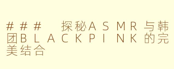 ASMR(自发性知觉经络反应)近年来在网络上引起了热潮,而韩国女歌唱团体BLACKPINK凭借其独特的音乐风格和影像效果,也吸引了众多粉丝的关注。当这两者相遇,会产生怎样的火花呢?