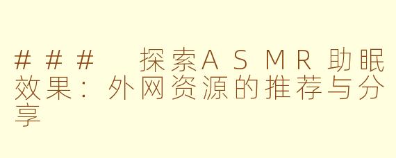 近年来,ASMR(自发性知觉经络反应)逐渐成为一种流行的助眠方法。它通过轻声细语、敲击声、刷子声等诱发听觉刺激,帮助人们放松身心,进入更深的睡眠状态。外网平台上充满了各种ASMR视频和音频资源,为助眠提供了丰富的选择。