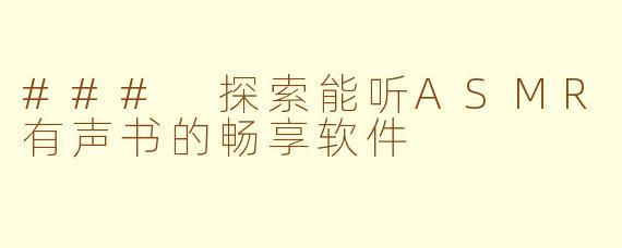 市面上有许多值得推荐的软件,比如“喜马拉雅”和“荔枝FM”,它们都提供了丰富的ASMR有声书库,用户可以根据自己的喜好选择不同类型的书籍和声音。同时,这些平台也经常更新内容,让用户在每一次的聆听中都有新的发现。