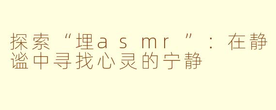 近年来,ASMR(自主感官经络反应)现象引起了越来越多人的关注。而“埋asmr”作为一种新兴的放松方式,逐渐在网络上流行开来。它本质上是一种通过细腻的声音和画面来达到舒缓身心的效果。无论是轻柔的耳语、细致的敲击声,还是自然界的声音,都能够唤起听众的放松感,帮助他们缓解压力。