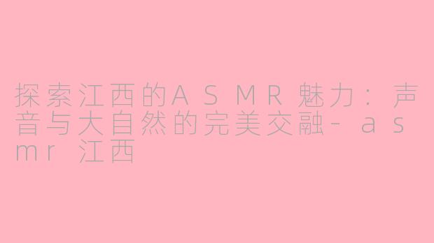 在当今快节奏的生活中,ASMR(自发性知觉经络反应)逐渐成为许多人放松心情的良药。而江西,作为一个有着丰富自然资源和深厚文化底蕴的地方,在ASMR领域同样展现出独特的魅力。