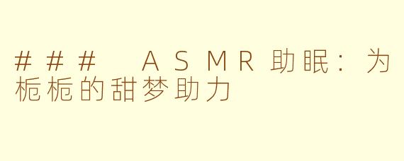 随着生活节奏的加快,越来越多人面临失眠的问题。ASMR(自主感觉经络反应)作为一种新兴的放松方法,逐渐成为许多人助眠的秘密武器。尤其是对于像栀栀这样的年轻人,ASMR不仅能缓解压力,还能帮助她更快入睡。