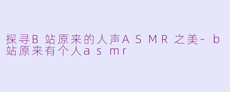 或许将来,人声ASMR会在某一天重新走进人们的视野,带来一场声音的盛宴。在这个快节奏的社会中,人们更加需要一种放松、治愈的声音方式。愿人声ASMR再次闪亮在B站的舞台上,为每一个寻找宁静的心灵带来一丝安慰。