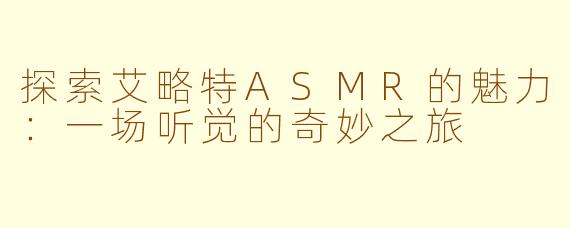 在当今快节奏的生活中,越来越多的人开始寻求心灵的宁静和放松,而ASMR(自发性知觉经络反应)便成为一种流行的放松方式。艾略特ASMR以其独特的声音和细腻的表现手法,吸引了无数粉丝。