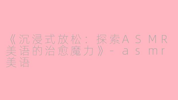 在快节奏的现代生活中,ASMR(自发性知觉经络反应)以其独特的感官体验成为许多人缓解压力、改善睡眠的秘密武器。而“ASMR美语”更是将英语的柔和韵律与触发音效结合,创造出令人着迷的沉浸式放松体验。