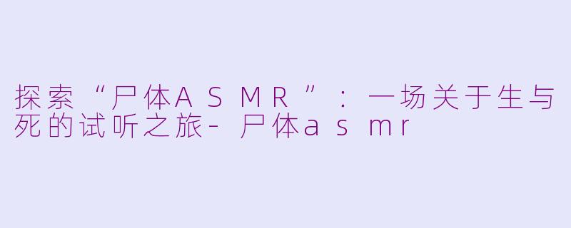 在近年来,ASMR(自发性知觉经络反应)现象逐渐走入大众视野,成为一种独特的放松方式。然而,近期兴起的“尸体ASMR”引发了不少讨论。这一类型的音频或视频作品,通常围绕着与尸体相关的细腻声音,如医疗器械的操作声、实验室的静谧,以及人类对死亡的哲学思考。