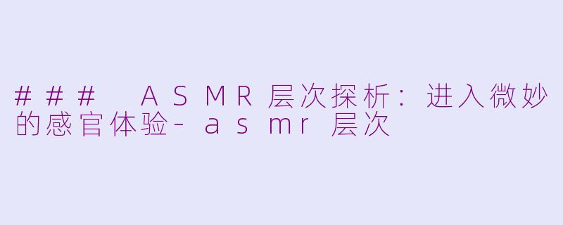 ASMR(自发性知觉经络反应)是一种独特的感官体验,近年来逐渐受到大众的关注。它通常表现为在特定声音刺激下,个体产生的愉悦感和放松感。ASMR的层次可以分为几个方面,值得我们深入探讨。