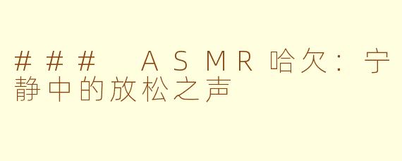 近年来,ASMR(自主感知经络反应)越来越受到人们的关注,其中“哈欠”声作为一种特殊的声响,正逐渐走入大众的视野。许多ASMR创作者在其视频中加入哈欠声,这不仅让观众感到舒适,还能帮助他们放松心情,缓解压力。