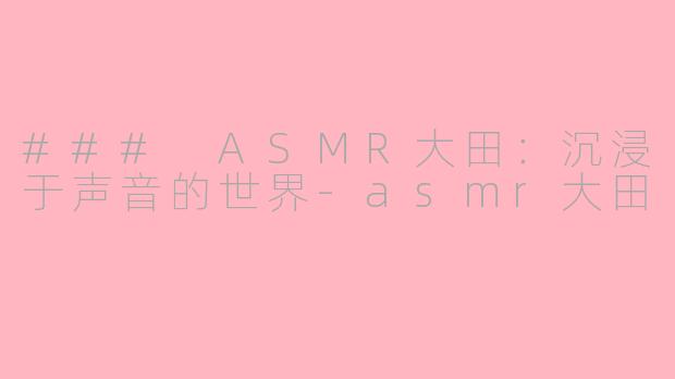 ASMR大田,是近年来在网络上逐渐崭露头角的一位ASMR(自主感官经络反应)创作者。她以其独特的声音和轻柔的语调吸引了大批粉丝。ASMR大田的视频通常包含各种触发音,如轻声细语、翻书声、敲击声等,能够让观众在繁忙的生活中获得放松和宁静。