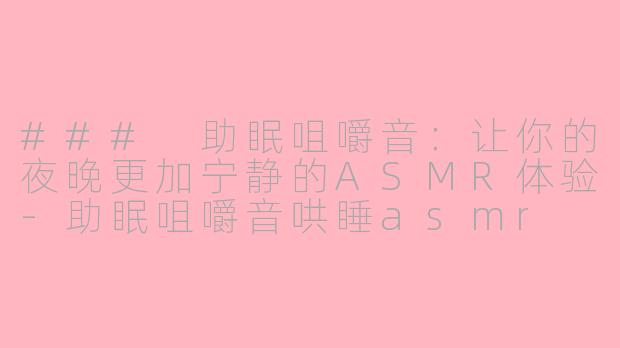 总之,助眠咀嚼音ASMR为那些寻求安宁和放松的人们提供了一种新的选择,让每一个夜晚都可以变得更加宁静和美好。