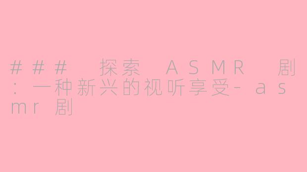 近年来,ASMR(自发性知觉经络反应)逐渐成为互联网热潮。这种现象让许多人在观看特定内容时感受到身心的放松和愉悦。而“ASMR剧”则是将这一概念与戏剧情节结合的创新形式,吸引了大量观众。