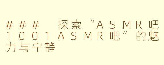在现代快节奏的生活中,许多人开始寻找一种能够放松心情、缓解压力的方式。正是在这样的背景下,“ASMR吧1001ASMR吧”应运而生,它成为了ASMR(自主感觉经络反应)爱好者们的聚集地。在这里,用户能够分享各种ASMR视频、音频和创意,体验不同刺激带来的愉悦感。