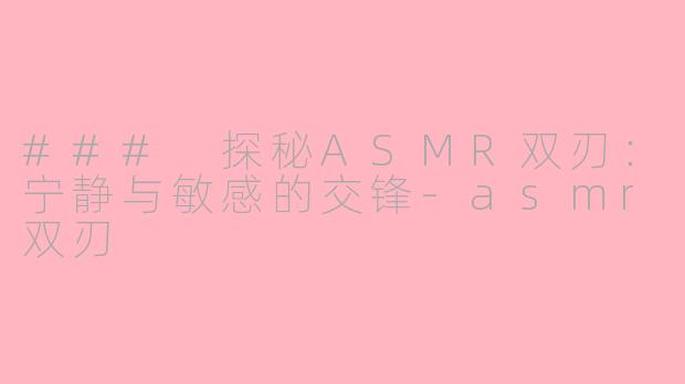 在如今的网络时代,ASMR(自主感觉经络反应)现象已成为一种广受欢迎的放松方式。人们通过聆听各种声音,如低语、敲击、刷子滑动等,体验到一种愉悦的触觉感受,帮助缓解压力和失眠。然而,ASMR的魅力并非全然积极,它也是一把双刃剑。