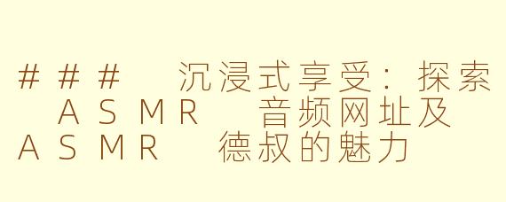 在现代生活中,压力和焦虑常常让人倍感疲惫。越来越多的人开始寻求放松和舒缓压力的方法,而 ASMR(自主感觉经络反应)音频恰好为我们提供了这样的机会。其中,ASMR 德叔作为多个平台上的热门声音创作者,凭借其独特的声音和创意的内容,吸引了众多粉丝。