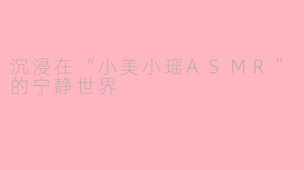 在这个快节奏的时代,很多人都在寻找放松心情的方法。小美小瑶ASMR,以其独特的声音魅力,成为了许多人心灵的庇护所。ASMR(自发性知觉经络反应)是指通过某些声音刺激引发的愉悦感,而小美和小瑶正是这方面的优秀代表。