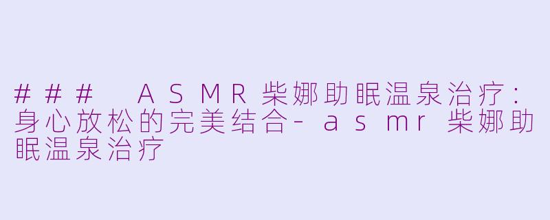 在现代快节奏的生活中,许多人面临 睡眠困扰,寻找有效的放松方式成为一种迫切需求。而ASMR(自发性知觉经络反应)作为一种新兴的放松方法,近年来受到了越来越多人的关注。结合温泉疗法,ASMR柴娜助眠的效果更是令人瞩目。