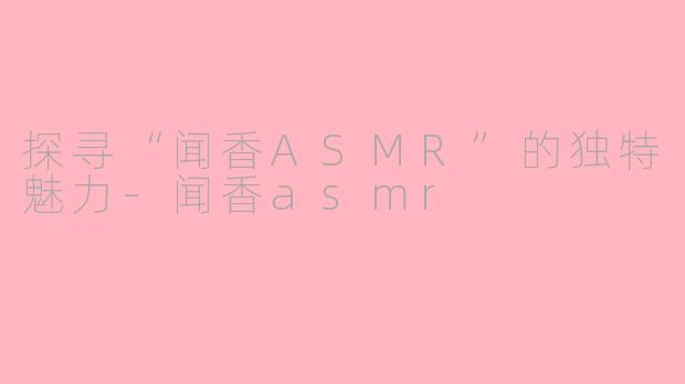 在当今快节奏的生活中,越来越多人开始寻求心灵的宁静与放松,而“闻香ASMR”正是一种新兴的放松方式。ASMR,即自主感觉经络反应,通常指通过听觉、视觉等感官刺激引发的愉悦感受。而“闻香ASMR”则是将香氛与ASMR相结合,通过细腻的嗅觉体验,让人在播放香氛时感受到深度的放松。