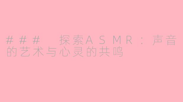 总之,ASMR是一种奇妙的声音艺术,它不仅能够触动我们的感官,更能在喧嚣的世界中带来一份属于内心的安宁。