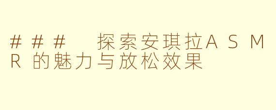 在当今快节奏的生活中,越来越多的人开始寻求放松与减压的方法,而ASMR(自发性知觉经络反应)正好满足了这一需求。其中,安琪拉ASMR以其独特的声音和温柔的氛围,赢得了众多粉丝的喜爱。