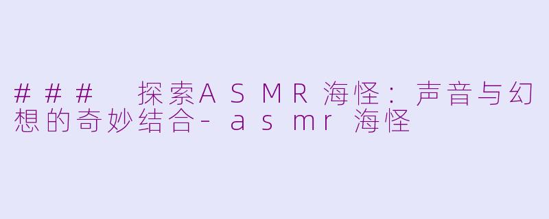 在当今的网络文化中,ASMR(自发性知觉经络反应)逐渐成为了一种流行的放松方式。而“ASMR海怪”这一题材则带来了独特的体验。无论是在视频平台还是音频应用中,海怪的低语、呜咽声和水下回响,构筑了一个神秘而令人放松的氛围。