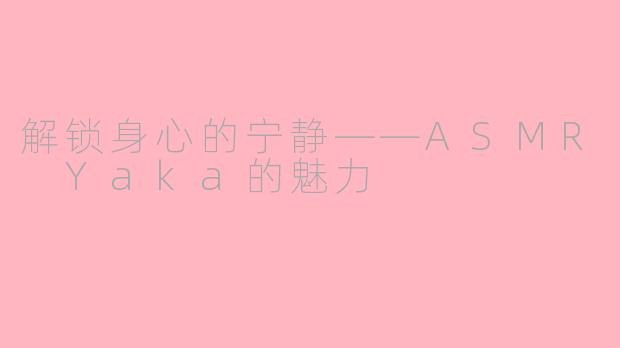 ASMR(自发性知觉经络反应)近年来在网络上越来越流行,而“ASMR Yaka”作为这一现象中的一部分,更是吸引了众多爱好者的关注。Yaka是通过声音、视觉等刺激,帮助人们达到放松和减压的效果。