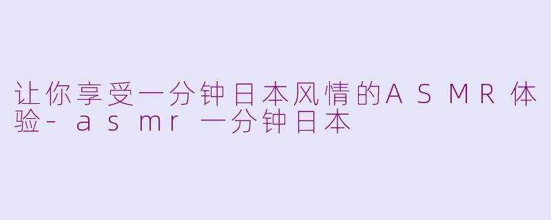 随着ASMR在网络上的流行,越来越多的人开始尝试这种让人放松的声音体验。日本作为一个文化底蕴深厚的国家,其ASMR作品也备受瞩目。