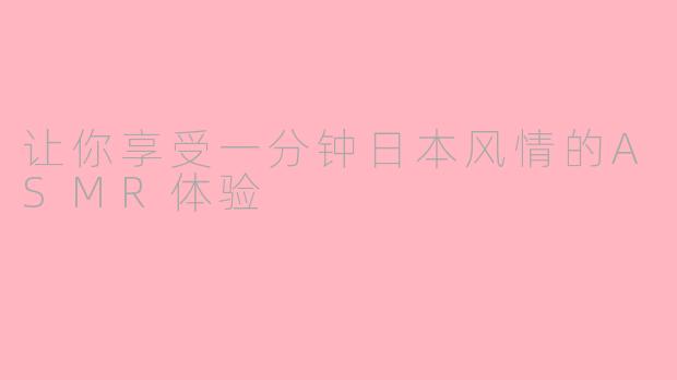 在不到一分钟的时间里,你就可以体验到日本独特的文化氛围和精致的美学。无需去日本,只要闭上眼睛,放松身心,就能享受这一段让人陶醉的ASMR之旅。让我们一起沉浸在这美妙的声音中,感受日本独特的魅力。