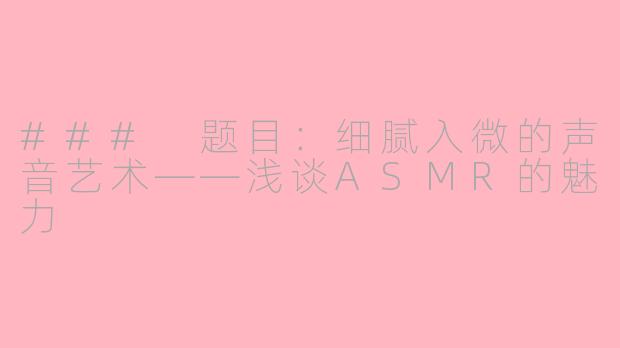 在现代快节奏的生活中,ASMR如同一剂良药,帮助人们减压、入眠,让我们在紧张的日常中找到片刻的宁静。无论是在家的沙发上,还是在工作间隙,ASMR都能带给我们无与伦比的放松体验。这种声音艺术正随着时间的推移,赢得越来越多人的喜爱,成为了现代生活中不可或缺的一部分。