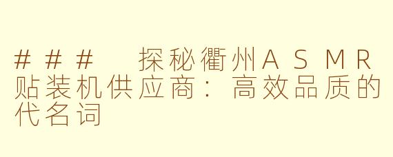 在现代电子制造业中,贴装机的应用越来越广泛,成为提升生产效率和产品质量的重要设备。在中国的衢州地区,许多ASMR贴装机供应商凭借优质的产品和高效的服务,在行业中脱颖而出。