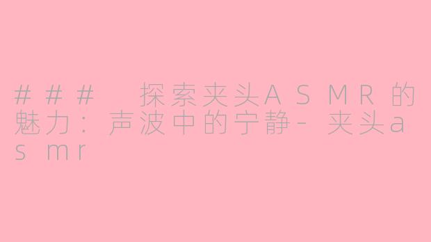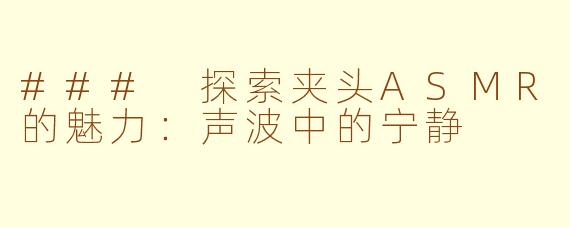 在当今快节奏的生活中,越来越多人向往一种放松和宁静的体验,而夹头ASMR正好满足了这一需求。ASMR(自发性知觉经络反应)是一种通过特定声音引发愉悦感的现象,其中夹头ASMR则是利用夹头声、轻声说话等温柔的声音来创造一种独特的放松氛围。