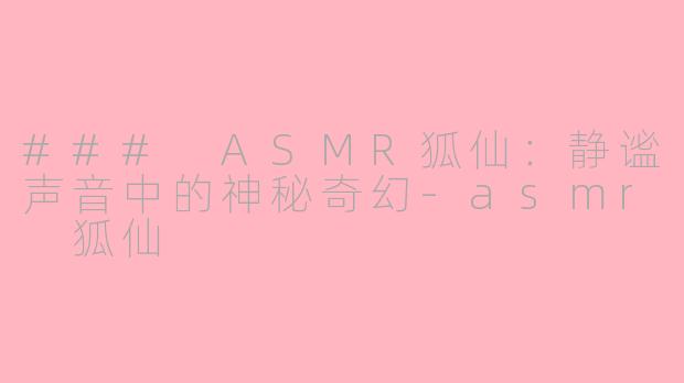 ASMR(自发性知觉经络反应)近年来受到越来越多年轻人的追捧,而其中的“狐仙”主题更是增添了一丝神秘的色彩。狐仙,作为中国传统文化中的灵异生物,通常被描绘为既美丽又神秘的存在。在ASMR作品中,狐仙的角色常常通过细腻的声音表演,带给听众一种如梦似幻的沉浸体验。