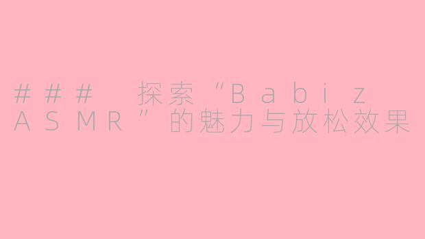 在当今快节奏的生活中,越来越多的人开始寻求放松和缓解压力的方法,而ASMR(自发性知觉经络反应)便是一种备受欢迎的选择。其中,“Babiz ASMR”成为了众多ASMR频道中的一颗璀璨明珠。Babiz ASMR以其独特的声音和创意内容吸引了大量观众,让人们体验到了深度的放松与宁静。