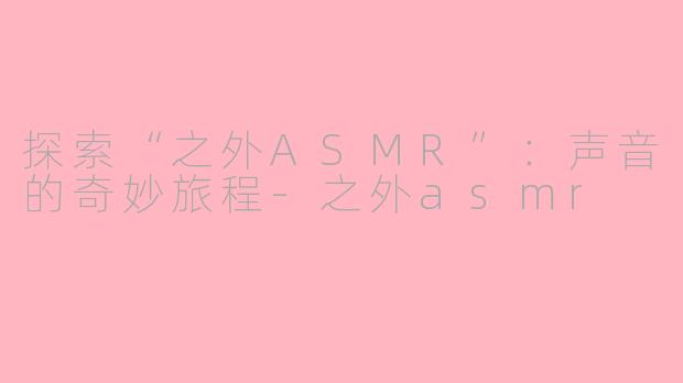 在当今快节奏的生活中,许多人寻求放松和减压的方法,而ASMR(自发性知觉经络反应)便应运而生。除了常见的耳语、轻敲声和细腻的触碰音外,“之外ASMR”则带我们走出传统的声音体验,探索更为独特的声音世界。