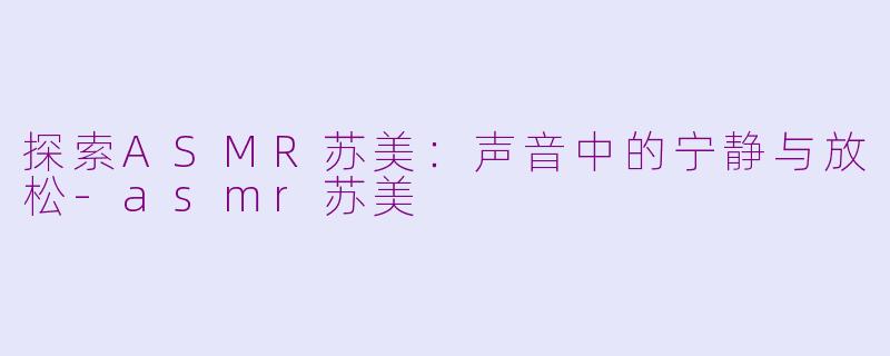 近年来,ASMR(自发性知觉经络反应)逐渐成为一种流行的放松方式,而“ASMRSuMei”则在这一领域里崭露头角。苏美的ASMR视频以其独特的声音效果和温和的语调赢得了大量粉丝。