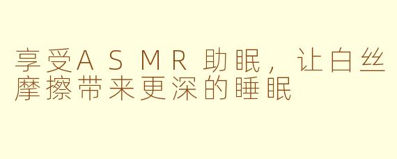 有没有一种方法可以让你在疲惫的一天结束后迅速入睡?ASMR(Autonomous Sensory Meridian Response)助眠技术可以帮助你达到这一目标,而白丝摩擦声音是其中一种极具放松效果的方式。