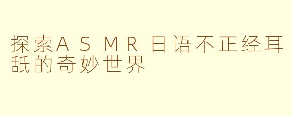 近年来,ASMR(自发性知觉经络反应)在全球范围内掀起了一股热潮。而其中,“日语不正经耳舐”这一细分领域,以其独特的表达方式和情感传递,吸引了不少爱好者。ASMR作品通常通过轻声细语、耳边低语等手法,帮助听众放松和减压。而“耳舐”这一特定的元素,则更增加了不少互动感和趣味性。