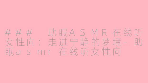 在现代快节奏的生活中,许多人常常面临失眠和焦虑的问题。为了帮助人们更好地放松和入眠,助眠ASMR成为一种新兴的疗愈方式。而女性向的ASMR则受到了越来越多人的青睐。