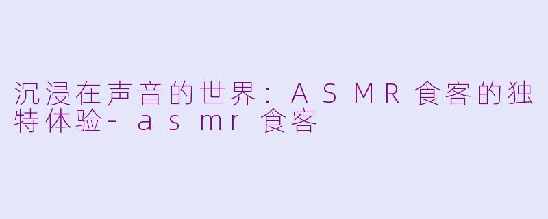 总之,ASMR食客通过声音与美食的完美结合,为人们带来了全新的感官盛宴,成为了现代生活中的一种独特放松方式。无论你身处何地,打开这样一个视频,或许就能获得一段美好的享受时光。