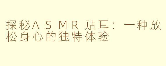 在这个喧嚣的社会中,人们对于放松身心的需求愈发迫切。ASMR(Autonomous Sensory Meridian Response)贴耳视频因其独特的效果逐渐受到关注。ASMR贴耳指的是通过录制一些触发ASMR反应的声音,例如轻柔的耳语、细微的高频声音等,让听者感受到一种极度放松和愉悦的体验。