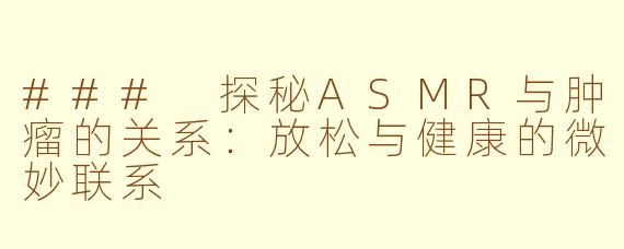 随着ASMR(自发性知觉经络反应)的流行,越来越多的人开始关注其对心理和生理健康的影响。研究表明,ASMR能够有效缓解压力和焦虑,而压力是与多种疾病,包括肿瘤,密切相关的因素之一。