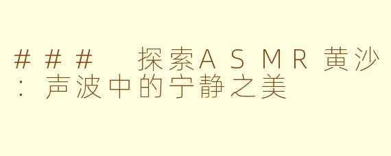 ASMR(自主感觉经络反应)是一种通过声音带来放松与愉悦的现象,而“黄沙”作为一种独特的ASMR媒介,正逐渐受到人们的关注。黄沙的细腻声响,如同轻柔的低语,能够激发听者的愉悦感、舒适感。