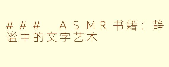 ASMR(自发性知觉经络反应)是一种通过声音、场景或环境引起放松和愉悦感的现象。在这个快节奏的现代社会中,越来越多的人开始寻求ASMR书籍,以通过阅读获得内心的平静。