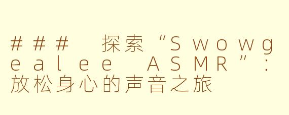 在现代快节奏的生活中,许多人寻找各种方式来释放压力,其中ASMR(自主感觉经络反应)便成为了热门选择。Swowgealee ASMR作为一个独特的ASMR频道,以其清新自然的声音和富有创意的内容吸引了大量粉丝。