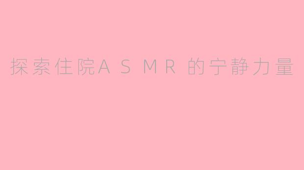 在医院这个充满压力与紧张的环境中,许多人可能会感到焦虑和不安。而住院ASMR(自发性知觉经络反应)则为患者带来了意想不到的宁静体验。ASMR是一种通过特定声音和视觉刺激引发的愉悦感,常见的触发因素有轻声细语、纸张翻动、轻敲声等。在住院期间,患者常常面临许多不适,ASMR作为一种非药物的放松方法,能够有效缓解他们的紧张情绪。