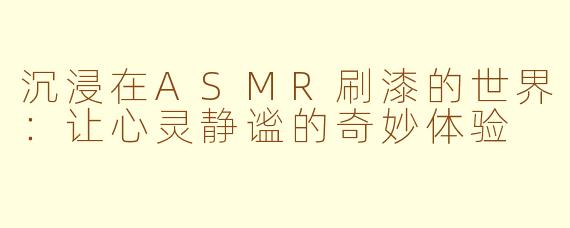 在当今快节奏的生活中,越来越多的人开始寻求一种独特的放松方式,而ASMR(自发性知觉经络反应)正是其中一种令人愉悦的体验。其中,ASMR刷漆视频因其独特的视觉和听觉感受,深受观众喜爱。