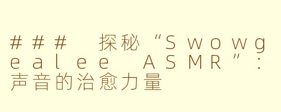 在现代生活中,压力无处不在,许多人开始寻求身心放松的方式。其中,“Swowgealee ASMR”作为一种新兴的放松形式,逐渐受到欢迎。ASMR(自发性知觉经络反应)通过特定的声音和视觉刺激,帮助人们达到放松和安宁的状态。Swowgealee ASMR 以其独特的声音效果和沉浸式体验,深深吸引了众多追随者。