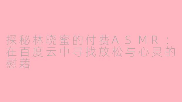 在快节奏的现代生活中,越来越多的人开始寻求放松与减压的方式,而ASMR(自发性知觉经络反应)音频因其独特的舒缓效果而受到欢迎。林晓蜜作为ASMR领域的新兴创作者,以其独特的声音和创意内容,吸引了大批粉丝。她的付费ASMR作品在百度云上发布,为用户提供了高品质的听觉享受。