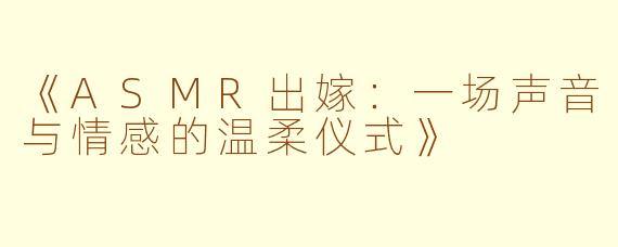 在数字时代的婚礼想象中,一种独特的感官体验正悄然流行——“ASMR出嫁”。它并非传统意义上的婚嫁流程,而是通过ASMR(自发性知觉经络反应)的细腻声音,为新娘、新郎或观礼者营造一场沉浸式的情绪仪式。